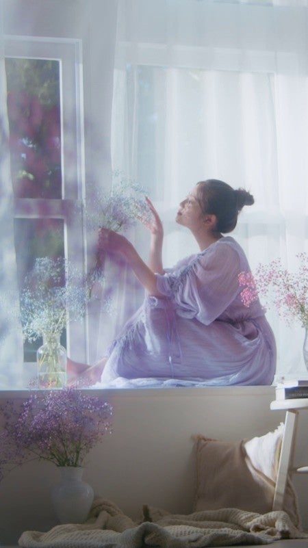 今回は、柔らかな春の日差しにあふれた穏やかな空間で撮影が行われました。大人の魅力とあどけなさが共存する今田さんの表情は、「カスミソウ ブーケ コレクション」のイメージそのもの。カスミソウを手に、優しく包み込むような微笑みを浮かべ、春の訪れを感じている今田さんの多彩な表情に、ぜひご注目ください。