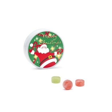 小さな可愛らしい缶に入った、クリスマス限定の小粒キャンディです。キウイ味とアップル味の2種アソートで、レッドとグリーンのクリスマスカラーになっています。サンタがデザインされた季節感たっぷりのデザインは、小物入れなどとしてアフターユースしたくなるかわいらしさで、プチギフトにもぴったりです。