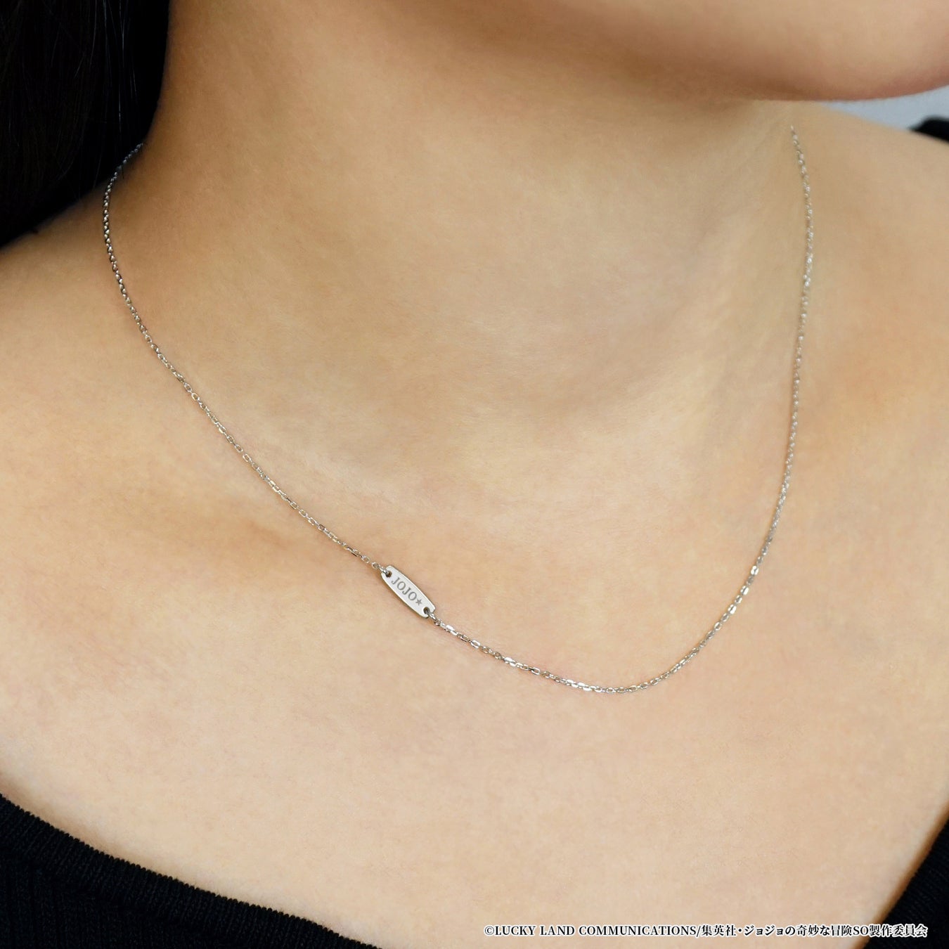 『JOJO★』の刻印が施されたプレートをあしらったチェーンネックレス。ベーシックながら華やかさのあるチェーンを使用し、プレートは中心から少しずらすことで抜け感のあるデザインに仕上げました。別売りのチャームを通して使用するのはもちろん、チェーンだけでもおしゃれに着けていただけます。長さと太さを変えた2種類をご用意しましたので、年齢や性別を問わず、ペアアイテムとしても楽しめるネックレスです。※チェーンネックレスとネックレスチャームは別売りとなります。