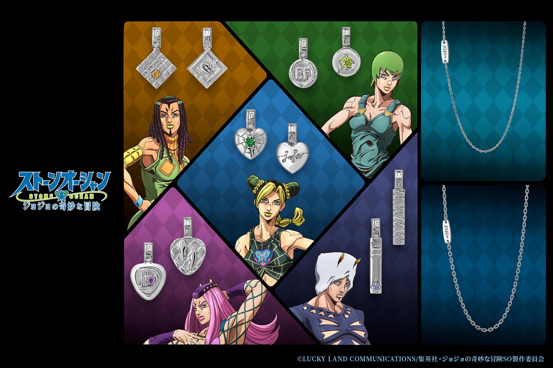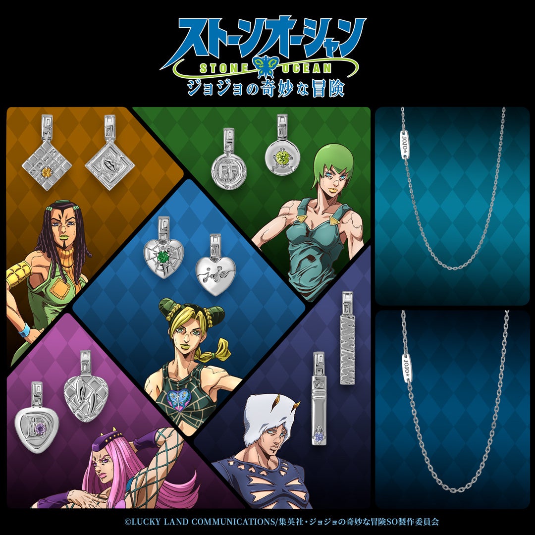 株式会社バンダイ ライフスタイル事業部は、アクセサリーブランド「TAKE-UP(テイクアップ)」とのコラボアイテムとして、アニメ『ジョジョの奇妙な冒険 ストーンオーシャン』より、シルバーチェーンネックレス(全2種)と、天然石を使用し、キャラクターとスタンドを表現したリバーシブルネックレスチャーム(全5種)の予約受付をプレミアムバンダイ他にて1月31日(金)12時より開始致します。