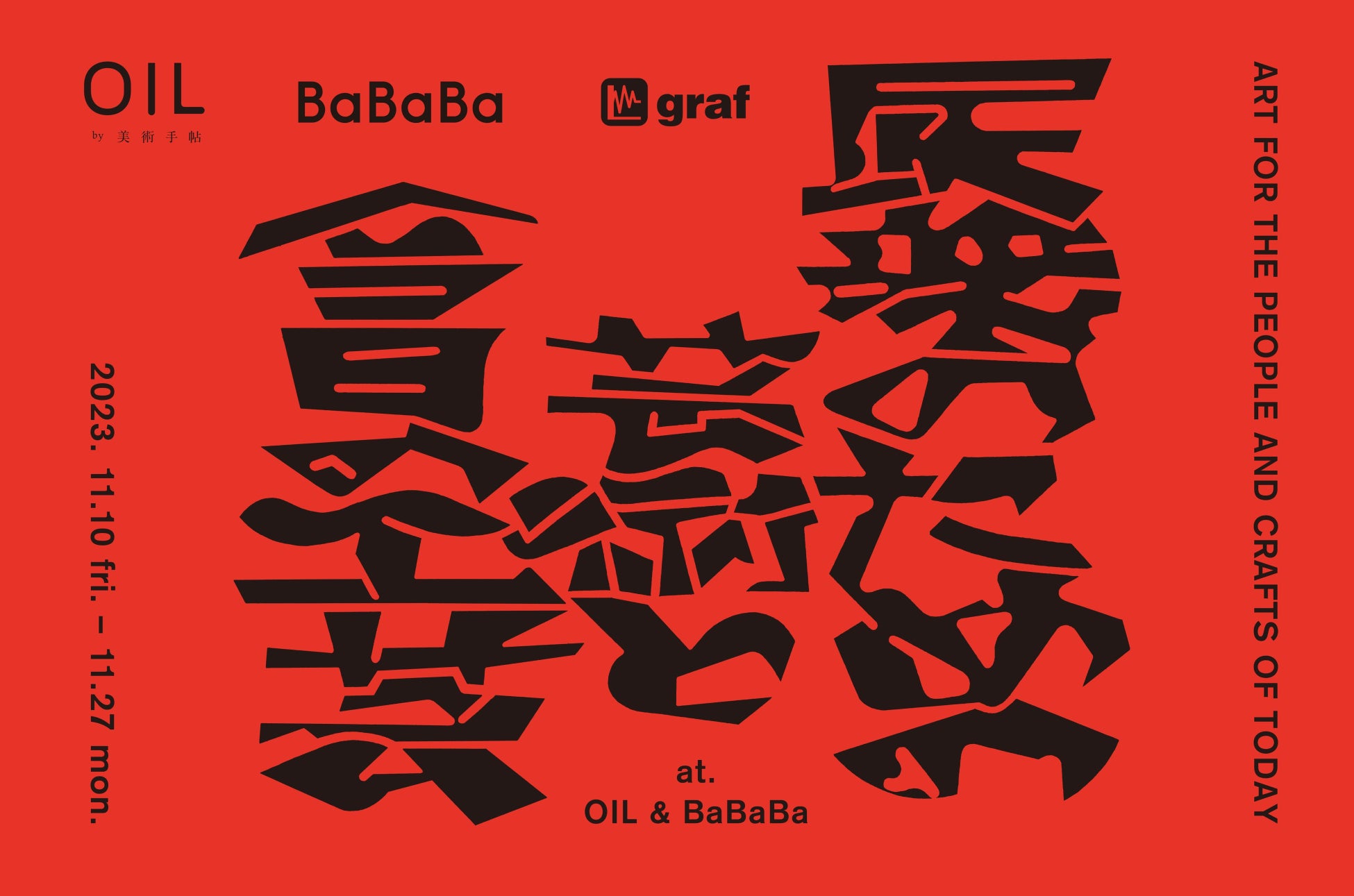 大阪を拠点に活動するクリエイティブユニット・grafと、アートメディア「美術手帖」が運営するギャラリー・OIL by 美術手帖が共同キュレーションを手がける展覧会「民衆のための芸術と今日の工芸」を、2023年11月10日(金)〜27日(月)にかけて、OIL by 美術手帖ギャラリー(渋谷)、BaBaBa(高田馬場)の2会場で開催します。