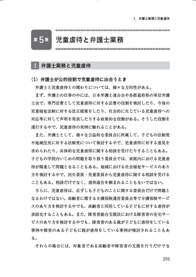 国・地方自治体の責務や関係機関との連携方法だけでなく、実際に弁護士が児童虐待に直面する各場面を紹介し、弁護士が行うべきこと・できないことを解説します。