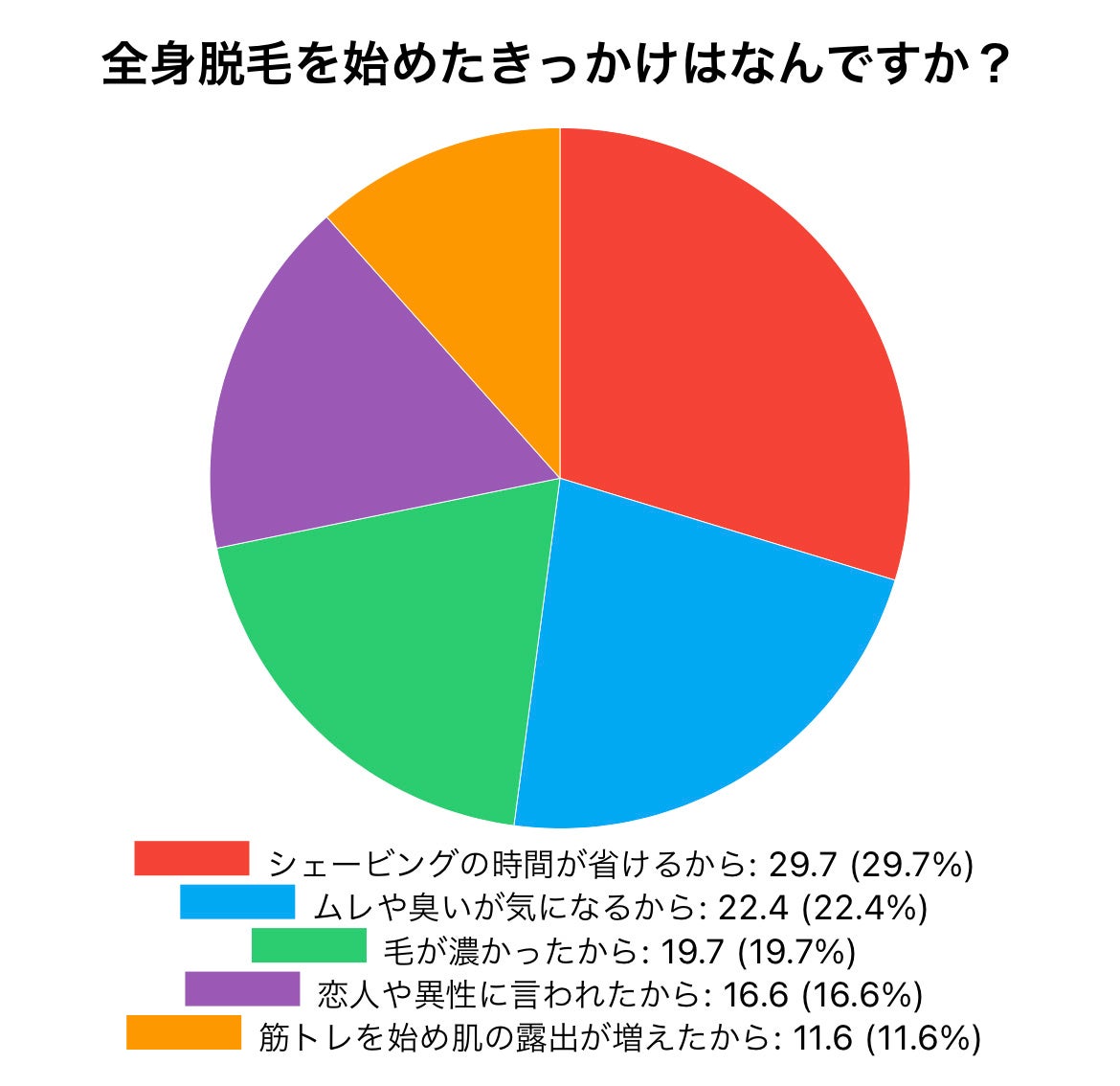 全身脱毛を始める方が多く、始めたきっかけや始めるにあたって脱毛サロンの決め手がわかりました。
