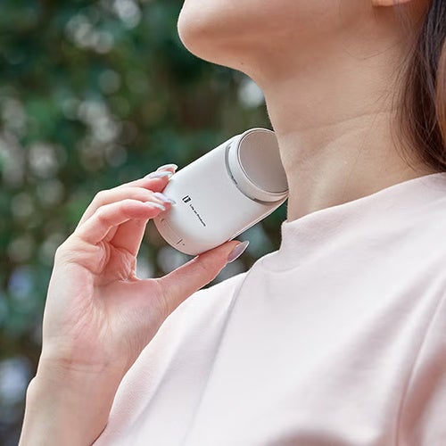 襟元に装着して服の中に風を送るアイテムです。冷却プレート付きで、ピンポイントを冷やしながら涼むことも可能。薄型でコンパクトなので外から見ても気になりにくく、外での活動にも便利です。
