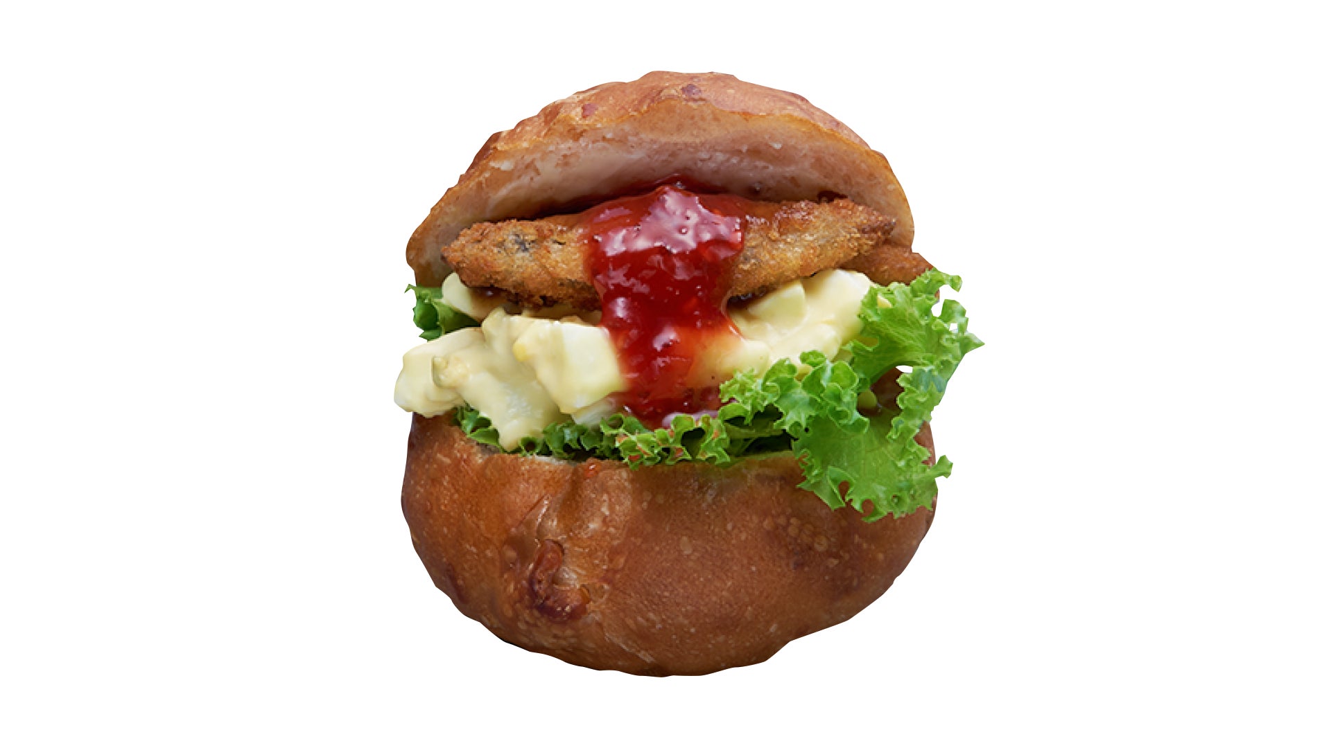 いりこにできないほど脂がのった“脂イワシ”のフライを使用し、持続可能な漁業を支えます。国産小麦の石臼挽き小麦粉の胡桃ロールに伊吹島いりこフライ、たまごサラダをサンドし、仕上げのアクセントに自家製ベリージャムをかけました。