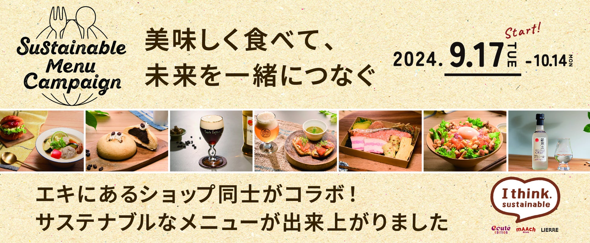 株式会社JR東日本クロスステーション デベロップメントカンパニー(所在地:東京都渋谷区、カンパニー長:杉村 晶生)は、運営する商業施設「エキュートエディション御茶ノ水・有楽町・新橋」「マーチエキュート神田万世橋」「リエール藤沢」「五反田駅店舗」にて、2024年9月17日(火)〜10月14日(月・祝)の期間、ショップ同士が施設の垣根を越えてコラボレーションしたオリジナルのサステナブルメニューを展開する「Sustainable Menu Campaign」を開催します。