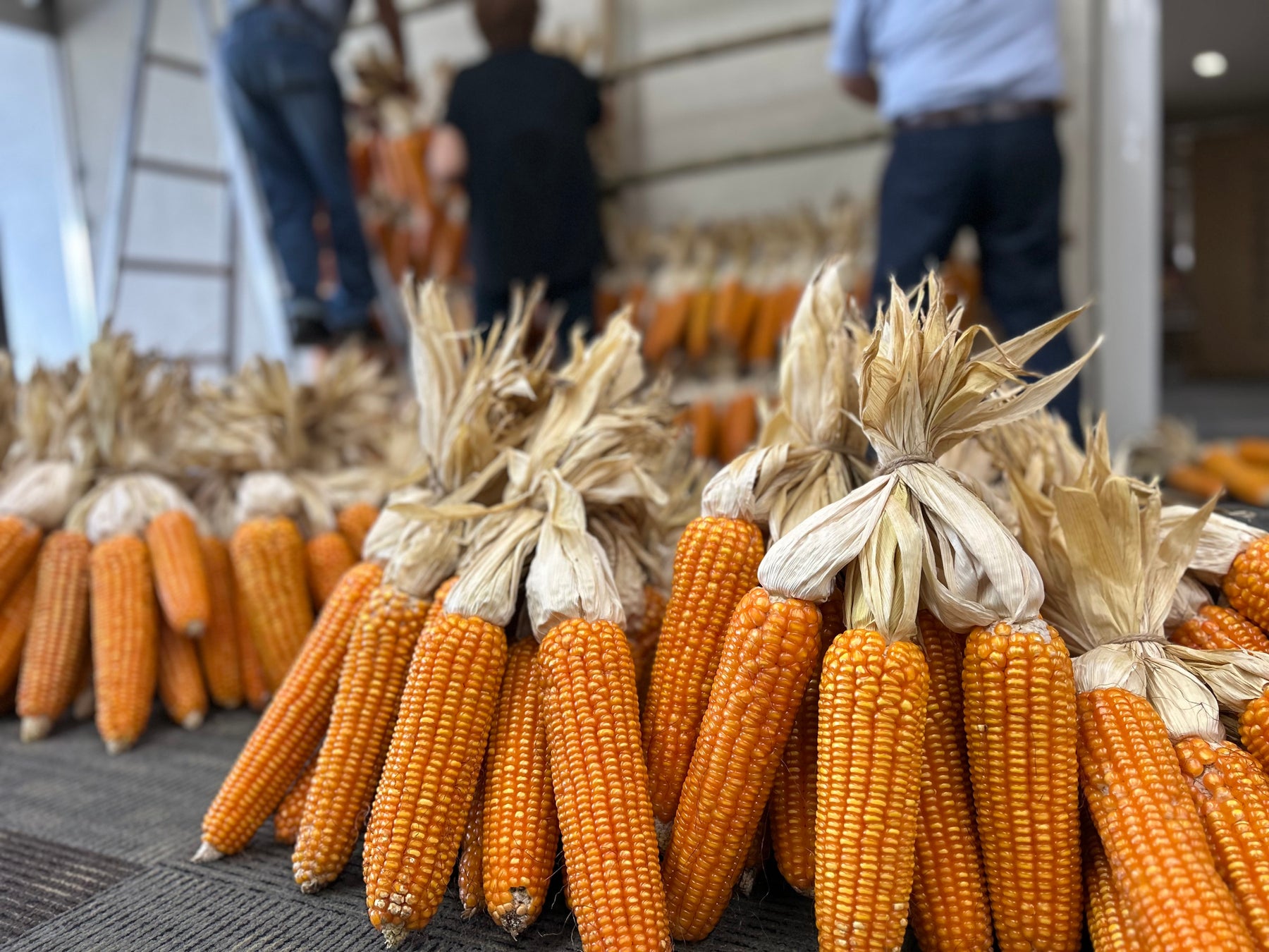 休暇村南阿蘇では、こうした地域の伝統を未来へつなぐ取組みとして、2024年に館内展示をスタート。高さ約3mの骨組みに、1束6本ずつまとめた地トウキビを吊るすことで、館内を温かく包み込むフォトスポットとなっています。展示は通年、今後毎年9月頃に入れ替えを予定しています。
