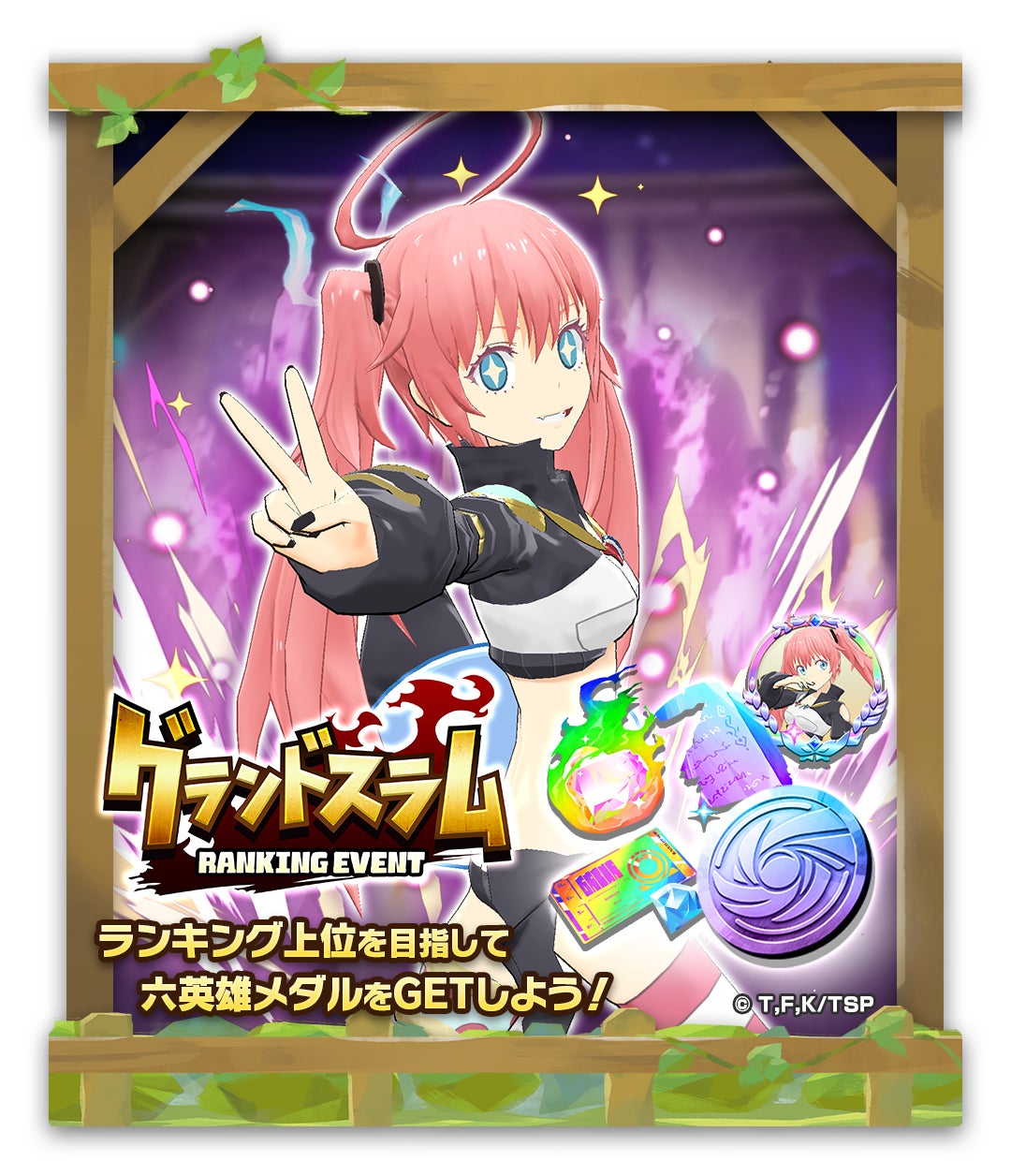 「グランドスラム」は連戦・編成・決戦、超連戦の4コンテンツで遊ぶランキングイベントです。決戦には「LINE:モンスターファーム」の世界に転移してきたミリムが育てた最強モンスター「ミリム」がボスとして登場します。連戦やミッションで入手したグランドスラムメダルで、さまざまな豪華報酬に交換することができます。