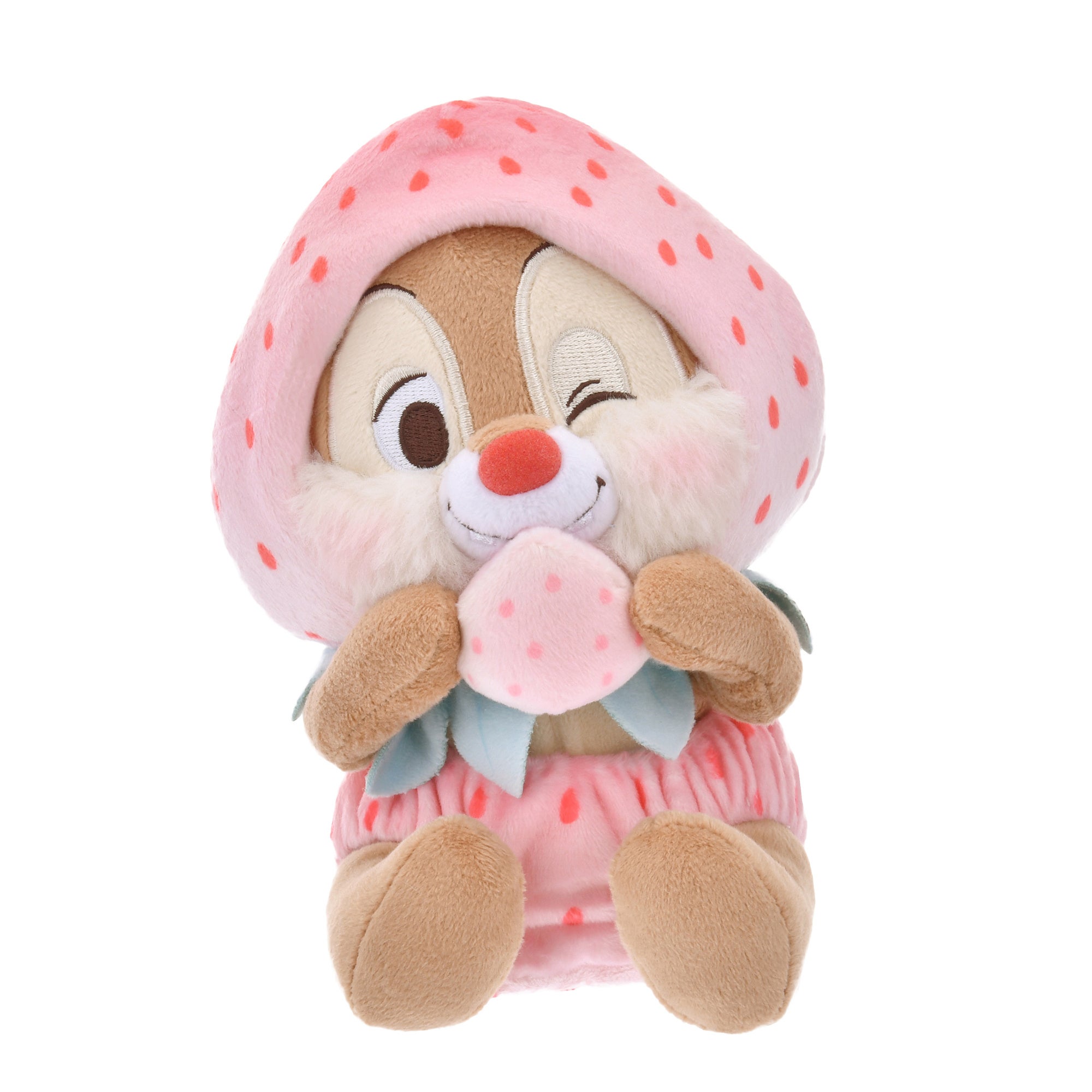 ぬいぐるみとぬいぐるみキーチェーンは、マリー、ミニーマウス、チップ、デール、ミス・バニーがラインナップ。今回はほんのり甘いいちごの香り付き!いちご柄のラブリーなコスチュームを身にまとっていたり、いちごを手にウインクしていたりと、思わずぎゅっと抱きしめたくなる可愛さです。