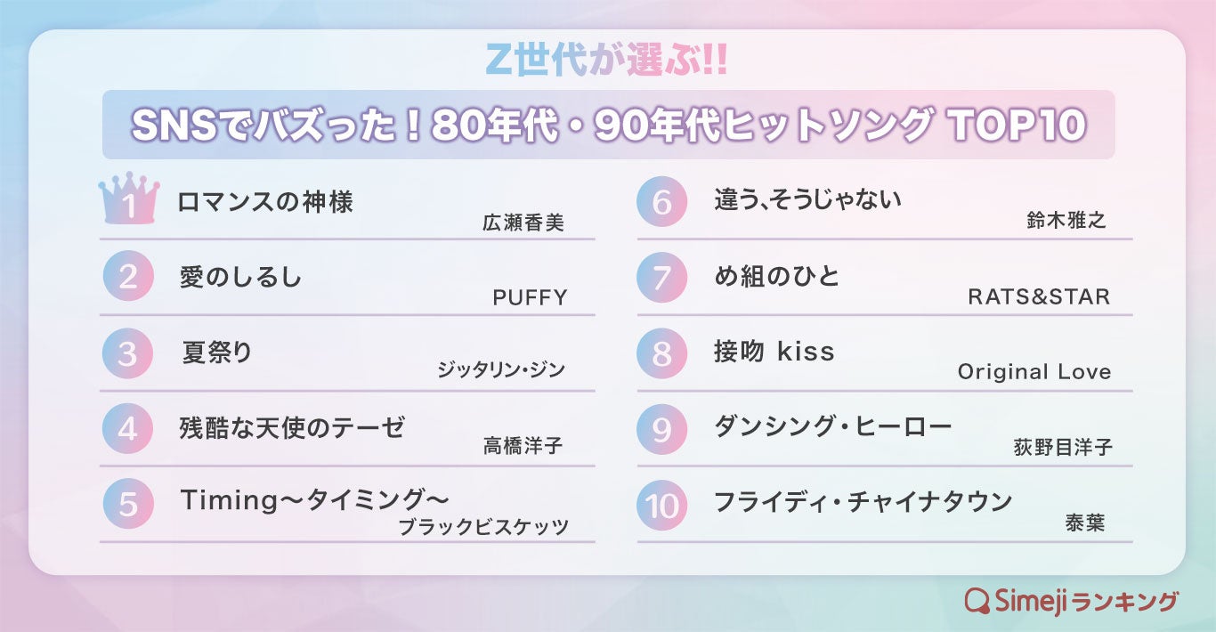 【Simejiランキング】Z世代が選ぶ!!「SNSでバズった!80年代・90年代ヒットソングTOP10」