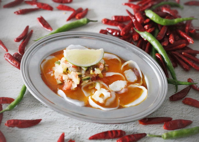 冷製の柔らかい水タコに激辛ピカンテオイルを絡めた、一味違うホットカルパッチョ。