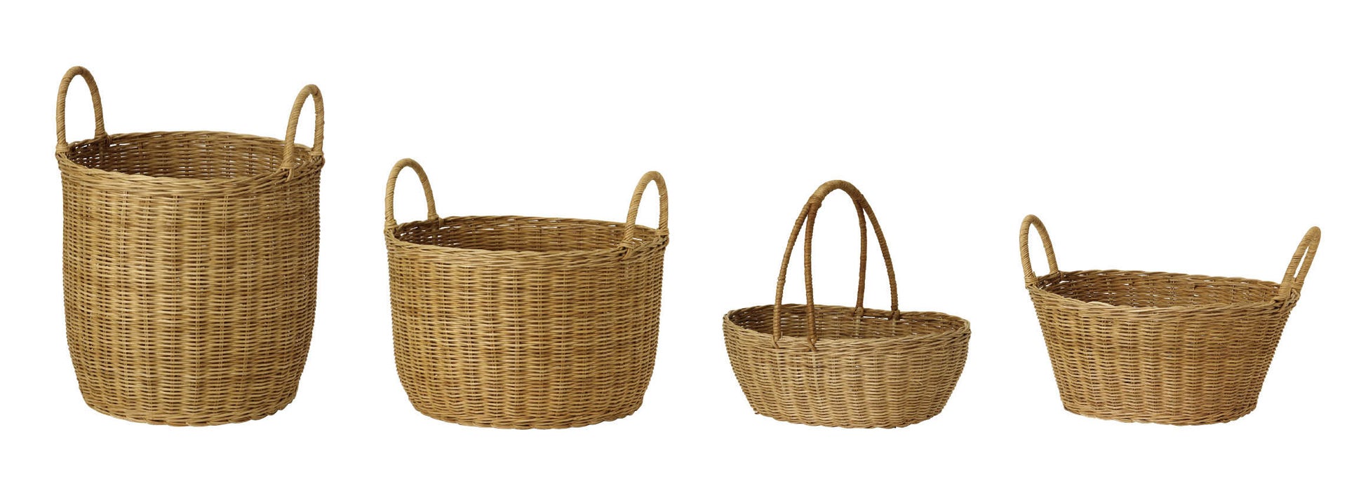 しっかりと細かく編まれたベトナム製のラタンのカゴ「MERRYバスケット」は、丈夫で見た目もかわいく、豊富なサイズで揃えているため、「自由に使える定番のカゴ」として2015年の発売以来、人気を博しています。さらに幅広いシーンで自由に使ってもらえるよう様々な形、サイズで今回新たに19種類を発売しました。立体的でどこかレトロで個性的な「MERRYバスケット」は、お部屋に置くだけでノスタルジックで温かみのある印象になります。