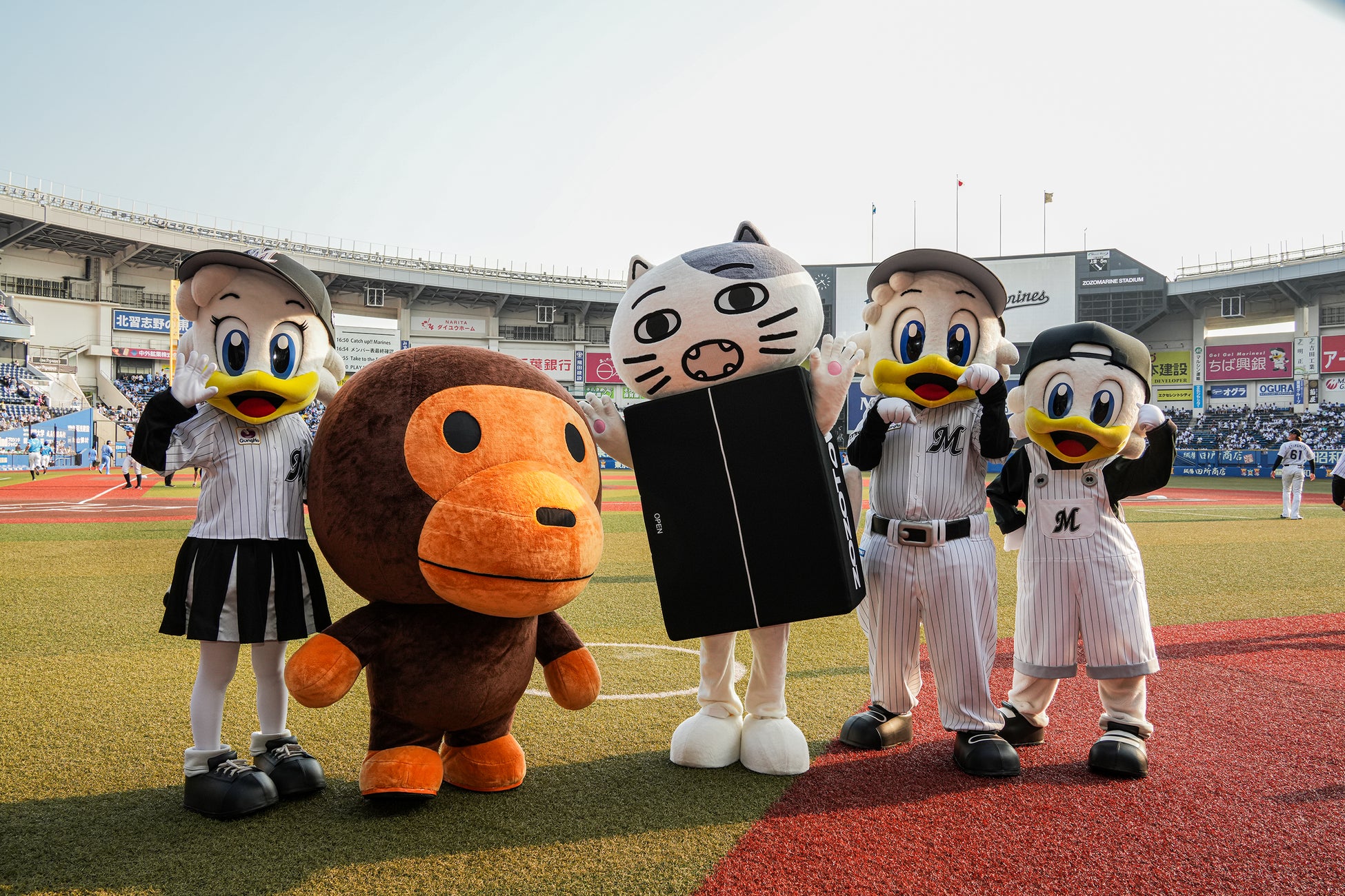 A BATHING APE®(以下、BAPE®)は、ZOZOTOWN20周年を記念し、千葉ロッテマリーンズとのコラボレーションによる特別ユニフォームで、8月24日(日)にZOZOマリンスタジアムにて開催されたファッションEC「ZOZOTOWN」を運営する株式会社ZOZO(本社:千葉県千葉市 代表取締役社長兼CEO:澤田 宏太郎)の冠協賛試合に参加しました。