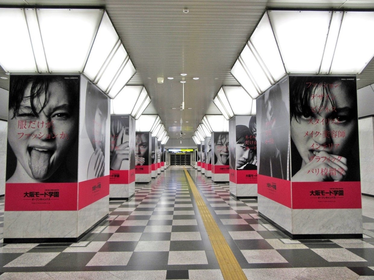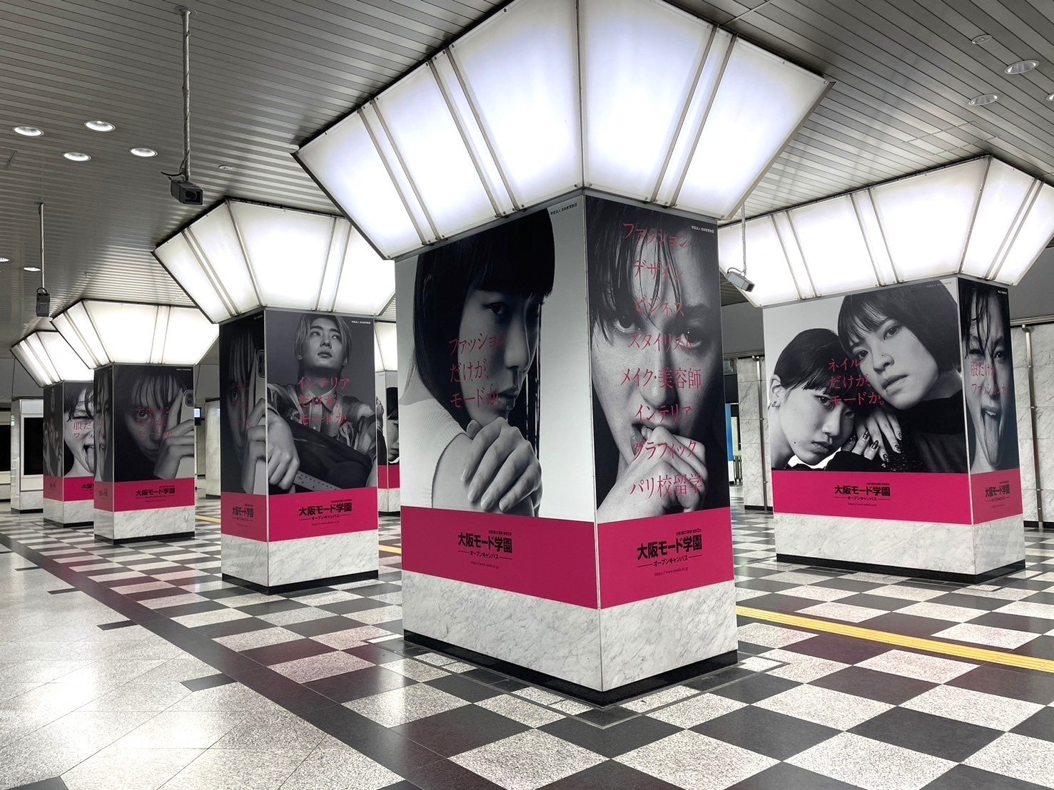 JR大阪駅の御堂筋口やルクア大阪前を中心に、大阪モード学園の広告がジャック!オープンキャンパス受付中