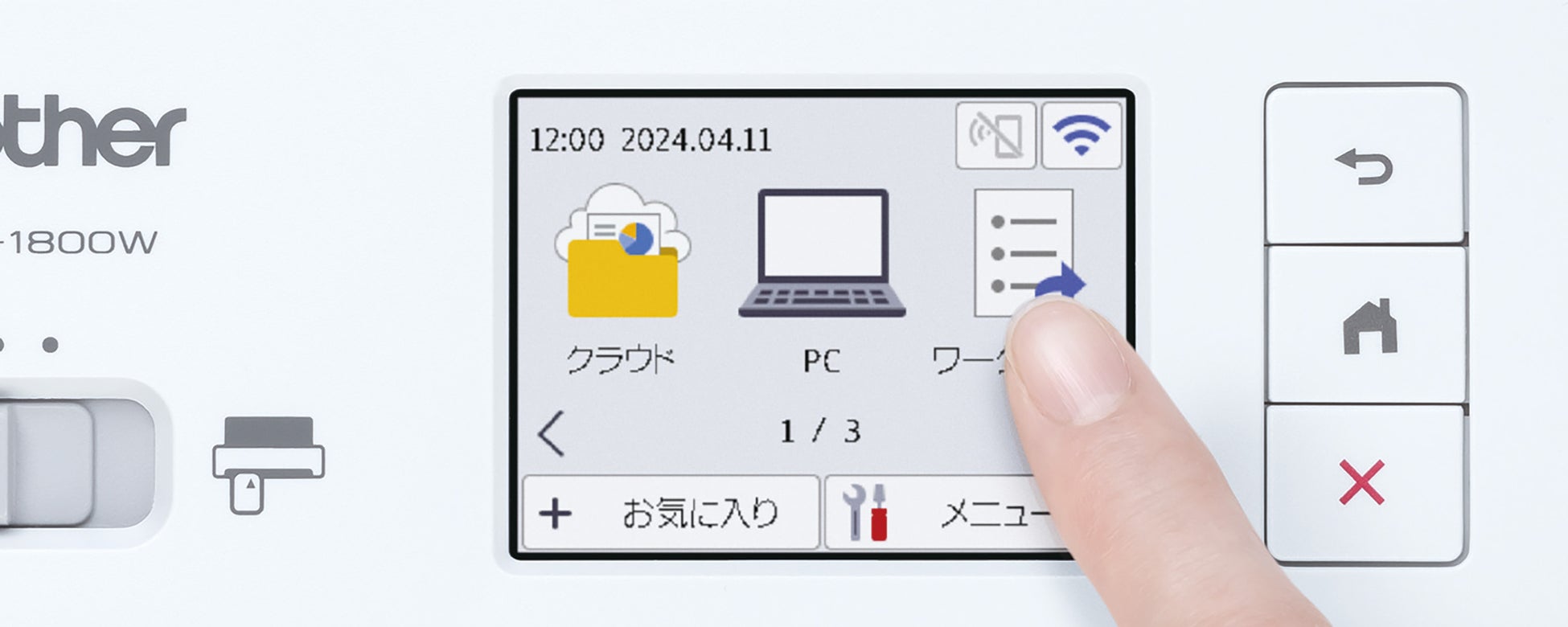 カラータッチパネルにより高い視認性と操作性を実現。また、よく使う機能やお気に入りページをホーム画面に設定することが可能となり、操作の手順を減らすことができる。