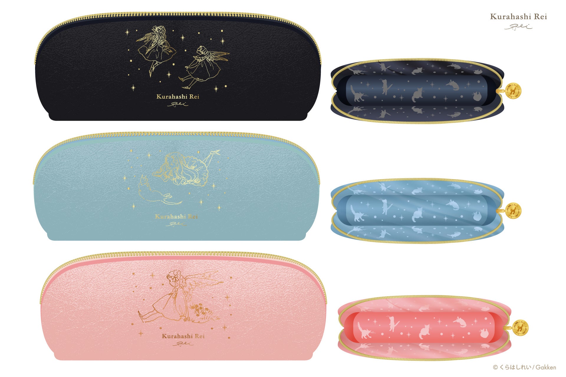 高級感のあるやわらかな合皮のペンケースです。引き手にはオリジナルデザインのコインチャームをあしらい、内側には猫柄の生地を使用したこだわりのデザイン!使うたびに心ときめくことまちがいなし。『くらはしれい』の世界観を身近に感じられるアイテムです。
