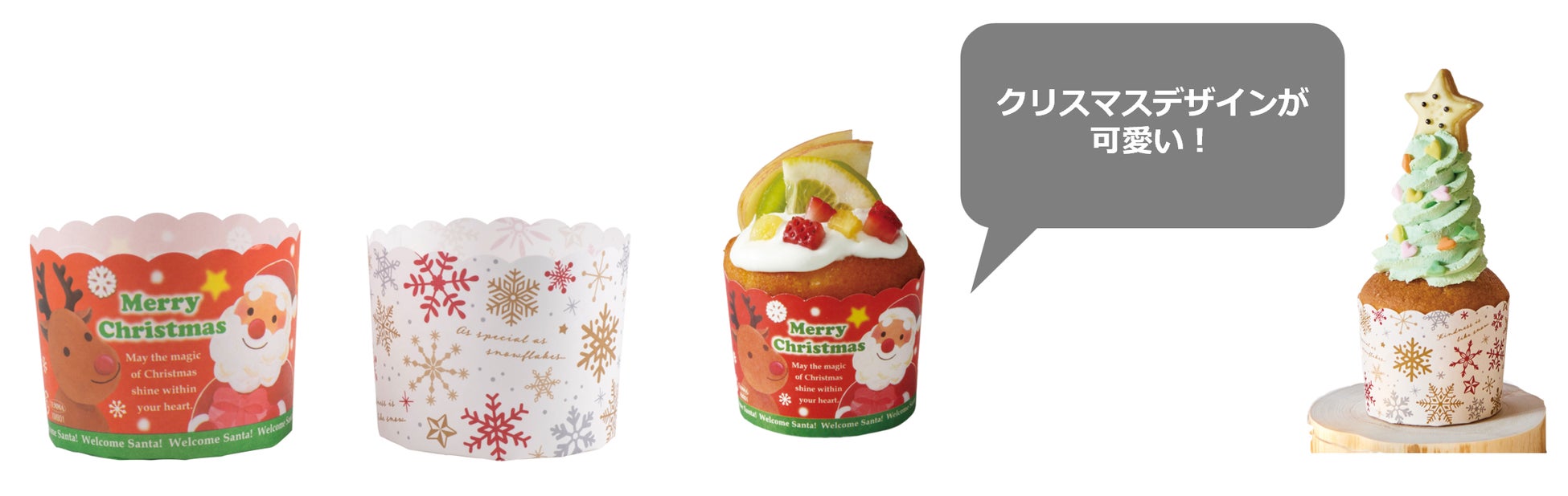 今回発売するアイテムは、焼いてそのままプレゼントできるクリスマスデザインのマフィンカップ、ぴったりサイズの袋がついたスター型ケーキカップに加え、サンタさんと仲間たちのラッピングバッグの3種類です。親子で簡単にお菓子作りが楽しめるラインナップとなっていますのでクリスマスシーズン、お子様とスイーツ作りにチャレンジしてみてはいかがでしょうか。