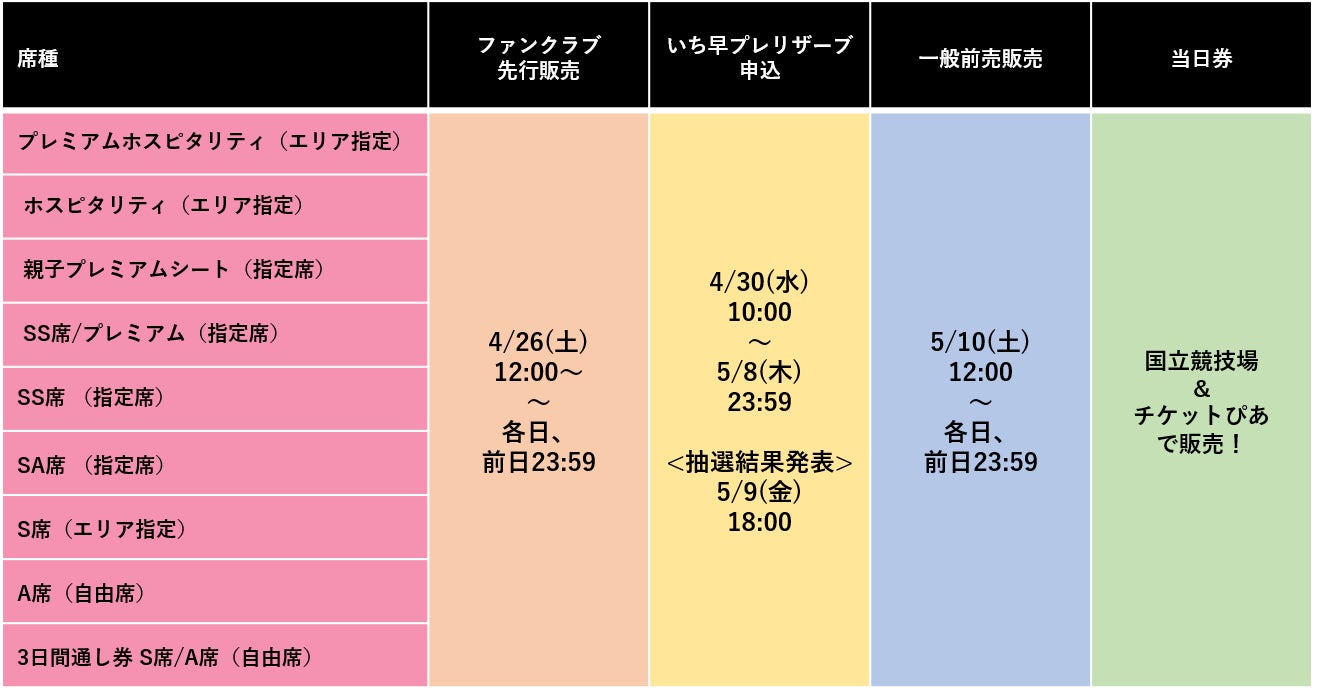 ファンクラブチケットは4月26日(土)より販売開始!最も早くチケットを手に入れるチャンスに加え、お得な価格で、大会直前まで購入可能です。
