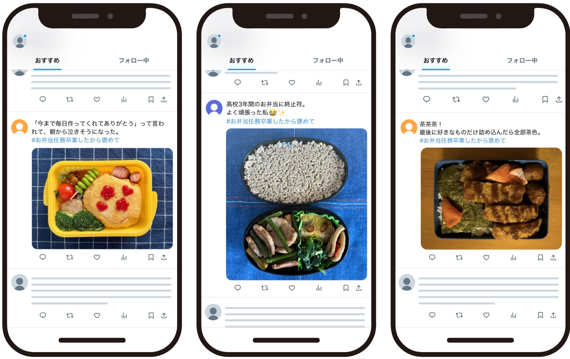 ■「#お弁当任務卒業したから褒めて」の投稿例
