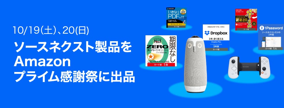 ソースネクスト株式会社(本社:東京都港区、代表取締役社長:小嶋 智彰)は、Amazonで2024年10月19日(土)0時から20日(日)23時59分まで開催される「Amazon プライム感謝祭」に、弊社の人気製品127製品を最大93%割引で提供することをお知らせいたします。