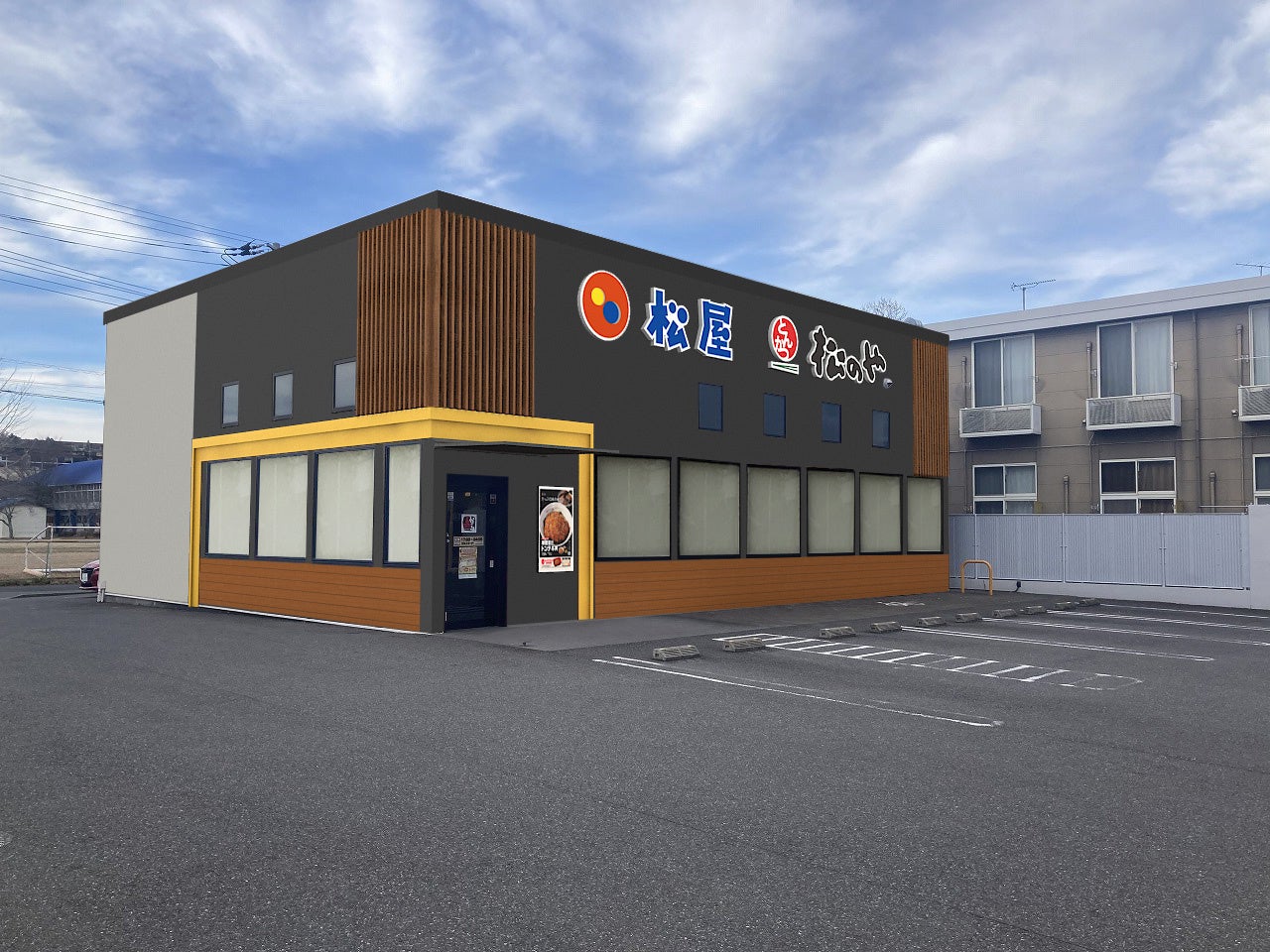 このたび松屋フーズ(本社:東京都武蔵野市、代表取締役社長:瓦葺一利)では、牛めし・カレー・定食・その他丼、朝定食、お子様メニューの「松屋」と、とんかつ店の「松のや」の複合型店舗「東金店」を千葉県東金市に出店いたしますのでご案内申し上げます。