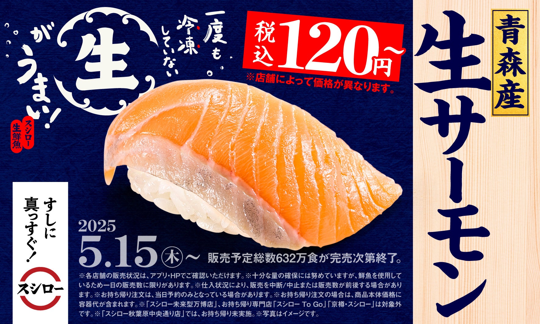 株式会社あきんどスシロー(本社:大阪府吹田市、代表取締役社長:新居 耕平)は、5月16日(金)より、全国のスシローにて北海道産のネタや名物などが楽しめる『北海道うまいもん祭』を開催いたします。さらに、『北海道うまいもん祭』前日の5月15日(木)からは青森近海で丁寧に育てられた「青森産生サーモン」が税込120円~登場いたします。一度も冷凍していない生だからこそのもっちりとした食感をお楽しみいただけます。