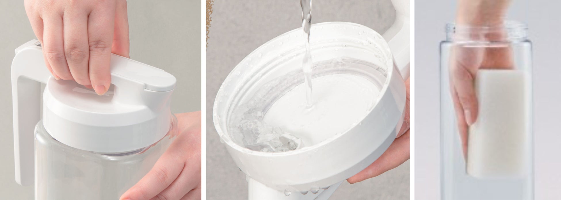 累計60万個販売!フタとパッキンが一体型で洗いやすいと大人気の「お手入れラクラク冷水筒」が、より開閉しやすく リニューアル。