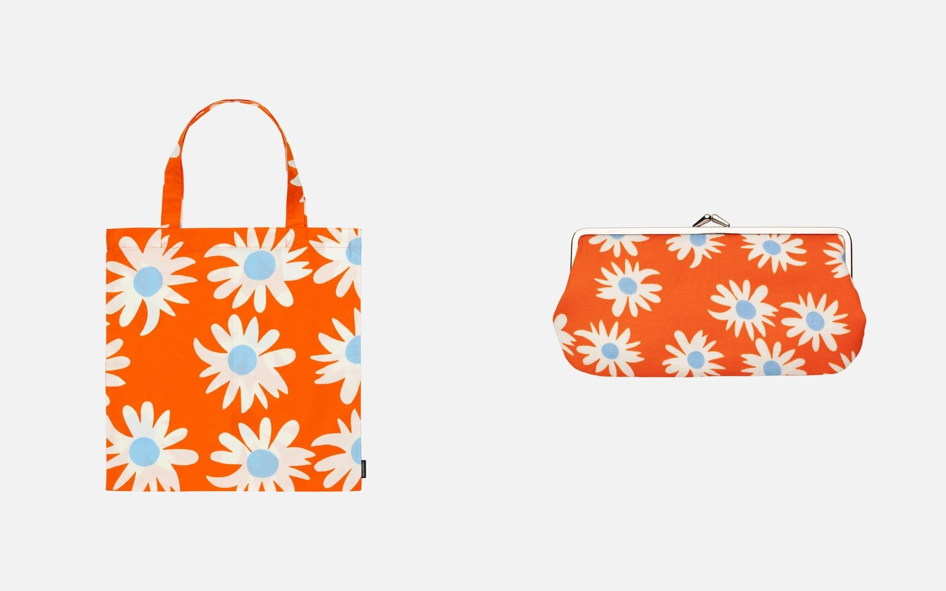 本コレクションでは、日本人プリントデザイナー 石本藤雄による1989年のプリント「プゥータルハクツットゥ(Puutarhakutsut/ガーデンパーティ)」や、マイヤ・イソラ(Maija Isola)による1972年のプリント「ラカスタ、エイ ラカスタ(Rakastaa, ei rakasta/愛してる、愛してない)」など、表情豊かなフラワープリントが彩ります。