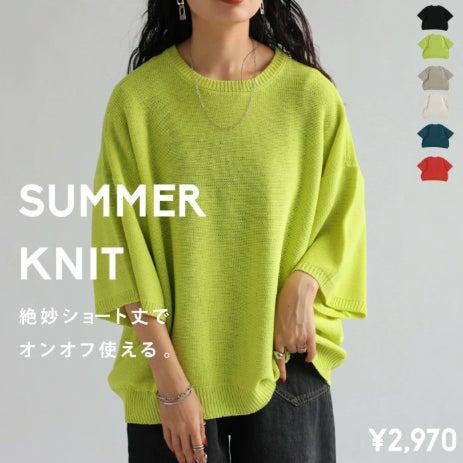 汗ばむ季節もさらっと着られる、麻タッチの編地がポイントのサマーニット。