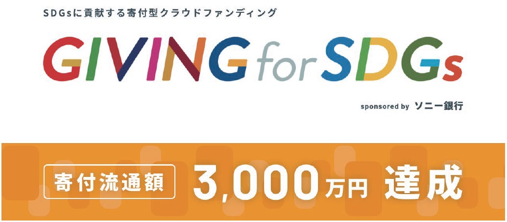 このたびSDGsを推進するNPOのクラウドファンディングを支援するプログラム「GIVING for SDGs sponsored by ソニー銀行」の支援総額が、協賛開始から約1年1ヶ月となる2024年3月11日時点で3,000万円を突破したことをお知らせいたします。