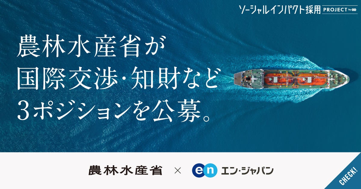 農林水産省、エン・ジャパンで国際交渉や知財管理などに関わる3ポジションを公募!