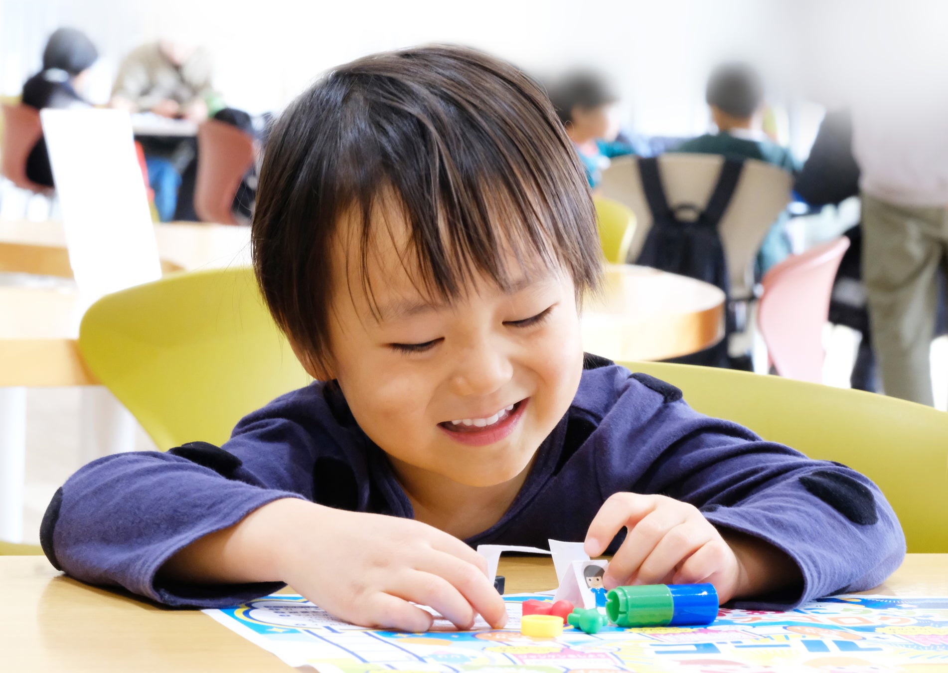 「ふれあいスゴロク」は、「誕生日が近い子と手の大きさを比べよう」「カードを引いた子と一番近い身長の子をさがそう」など、ゲームの中で自然に相手のことを知るきっかけや、触れ合いの糸口を盛り込み、ゲーム後も会話が弾み、コミュニケーションが取れるような工夫を凝らしています。遊んだ子どもたちからは「面白くて笑っちゃった」「楽しかったからもう一回みんなでやりたい」といった反響がありました。「ふれあいスゴロク」は触れ合うことで子どもが自信を持ち、安心して自分らしさを表現できるようになるように考えられた、エリエール えがおにタッチPROJECTのオリジナル制作ゲームとなります。