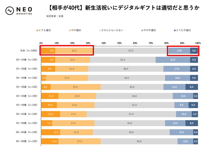 【贈る年代別】新生活祝いにデジタルギフトは適切だと思うか(n= 1,000)