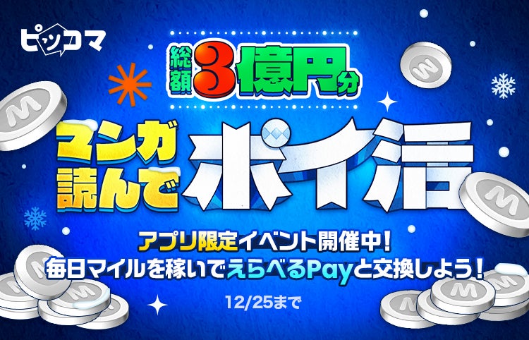 ピッコマ、総額3億円分の“ポイ活”イベントを11/29から12/25まで開催!作品閲覧などでマイルを貯めて「えらべるPay®︎」もしくは「コイン」と交換できる!