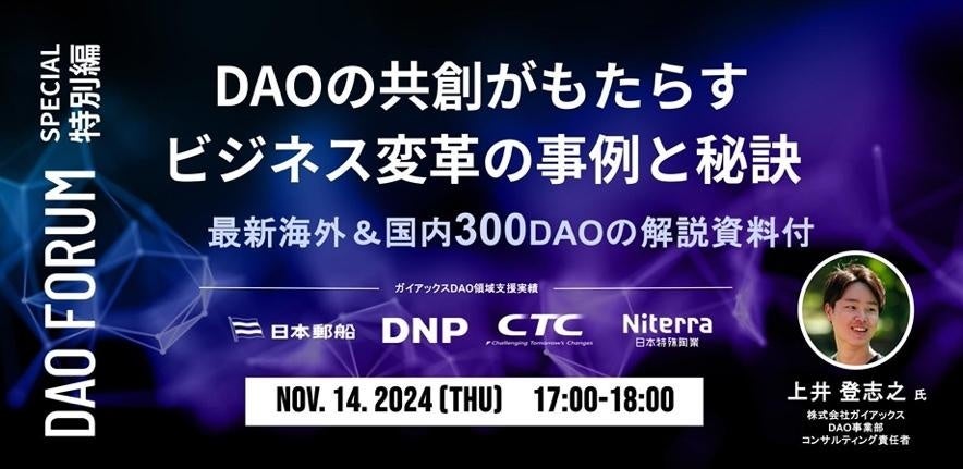 2024年11月14日(木)には、個別相談型で進行する少人数限定の有料セミナーを開催します。実際にDAOをどう活用しているのか事例を交えて解説していきます。