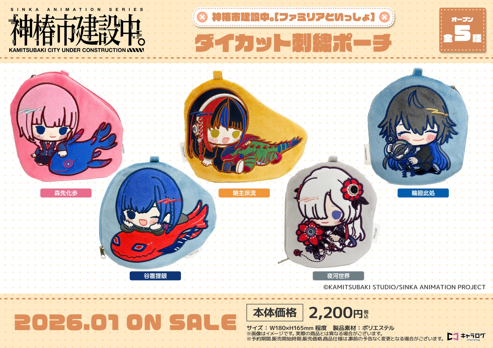 TVアニメ「神椿市建設中。」ファミリアといっしょシリーズより、ダイカット刺繍ポーチが追加されて2次予約を開始!