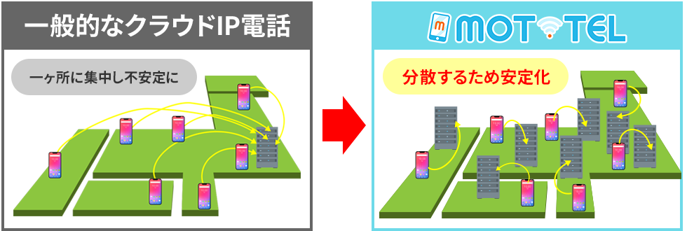 モッテルは、日本全国にエリア専用データセンターを設置することで、安定した通話を提供しています。