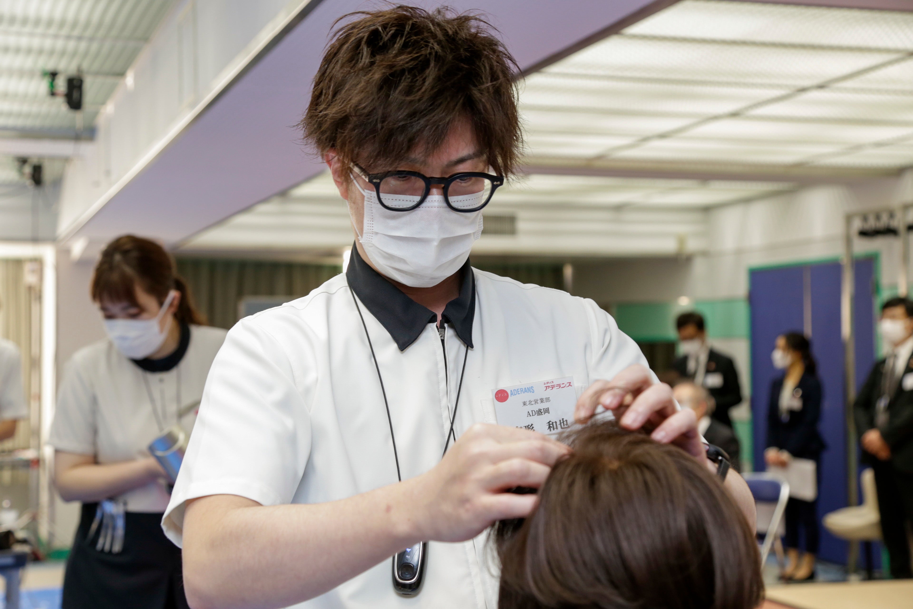 「アデランス全国技術競技大会」は1980年から開催されている当社の歴史ある大会です。全国の技術者が技だけでなく、センスや発想力を競い、互いを高め合うことで、日頃の教育・育成の集大成を再確認する機会となっています。お客様に心からご満足いただける最高の商品を提供するべく、今後も努力と研鑽を重ね、経営理念である「最高の商品」「最高の技術と知識」「心からのおもてなし」の実現を目指してまいります。