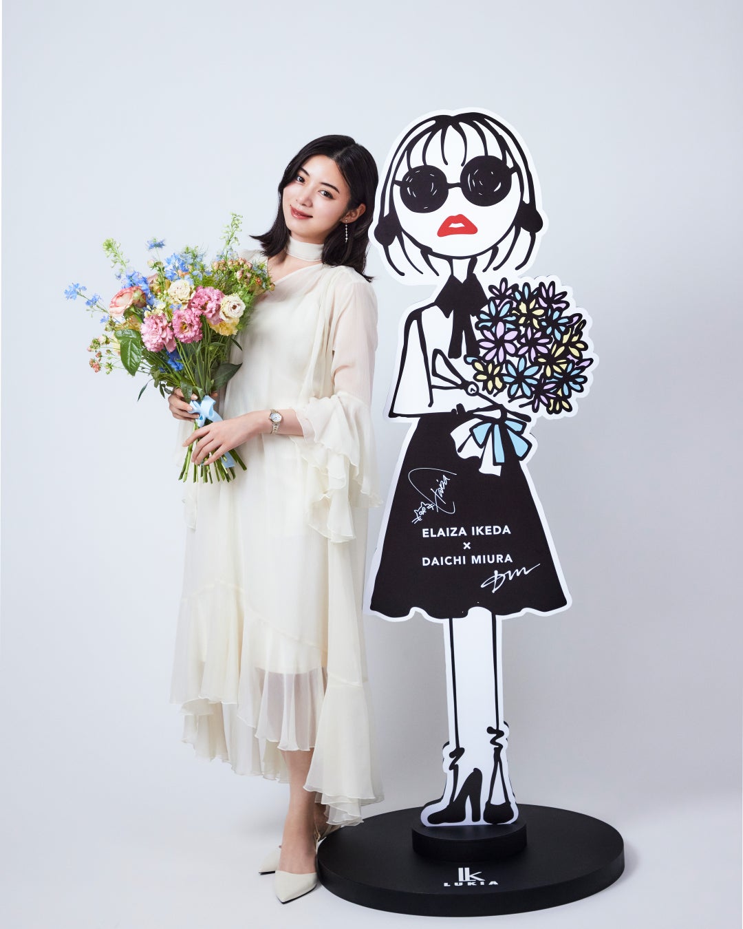 会場内には、池田エライザさんの直筆サイン入りの”エライザジョシーちゃん”等身大パネルも展示いたします。お友達や大切な方を誘って、ぜひルキアの特別な空間へお越しください。