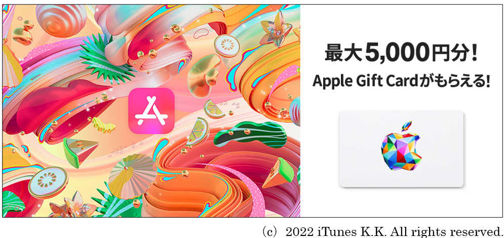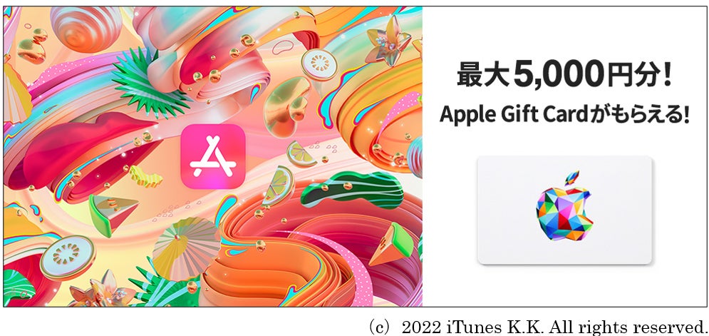 株式会社ジェーシービー (本社:東京都港区、代表取締役会長兼執行役員社長:浜川 一郎、以下:JCB)は、2022年8月1(月)よりJCBグループ会員様(※1)を対象に、条件達成者へもれなく最大5,000円分のApple Gift Cardを進呈する「App StoreはJCBで!使ってトクするキャンペーン」を開始します。
