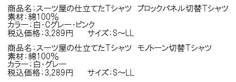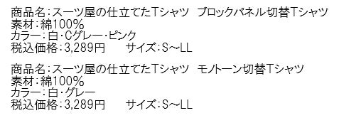 - 『スーツ屋の仕立てたTシャツ』 商品ラインナップ
