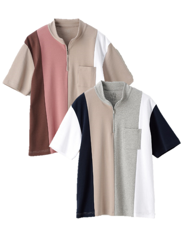 本商品は、即完売した無地のスロープネックタイプの他にも、パネル切替Tシャツ・ハーフジップタイプなど幅広いラインナップをご用意しております。