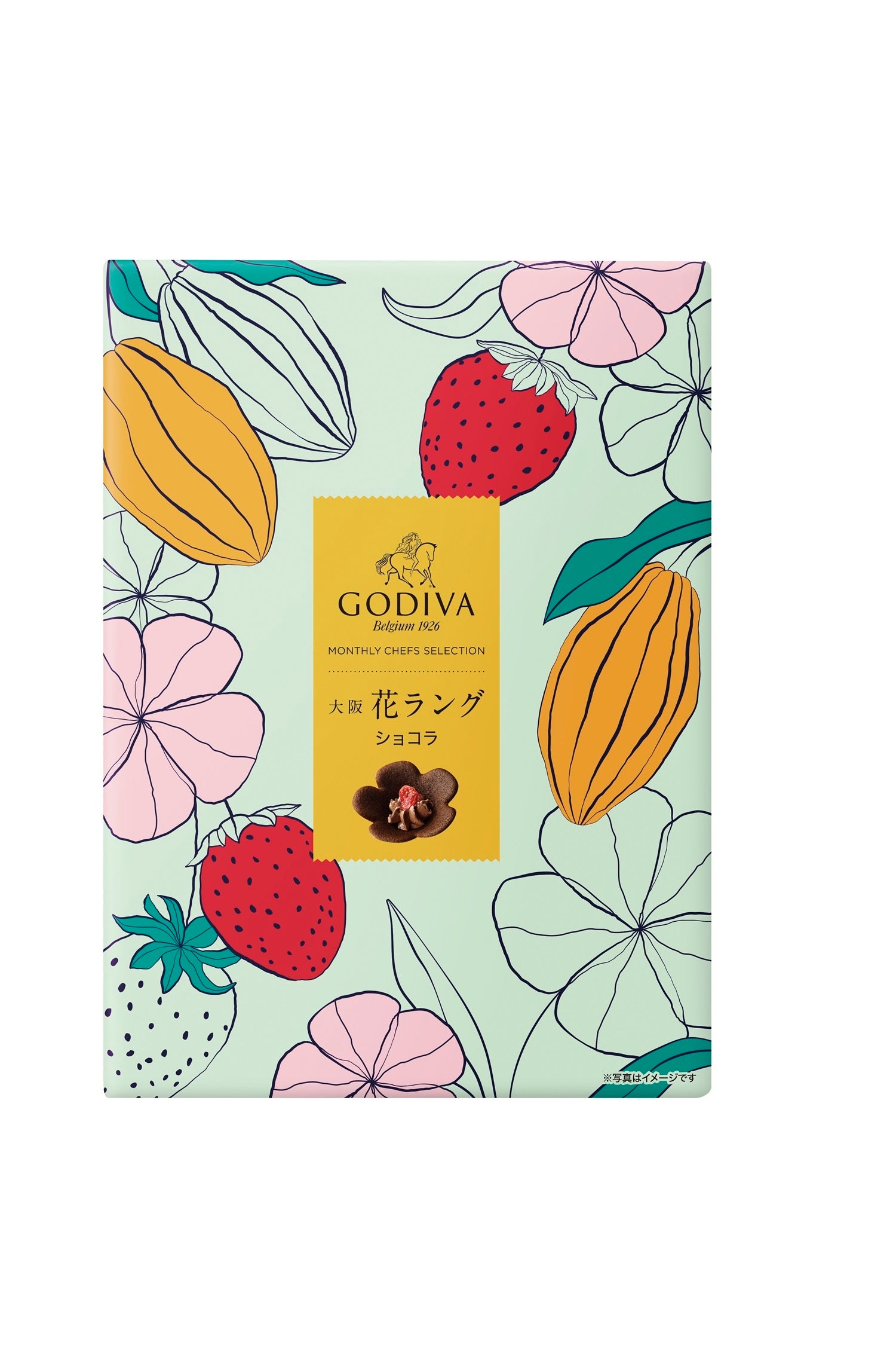 「ゴディバ マンスリー シェフズ セレクション」の新商品は、あみだ池大黒とのコラボレーションから誕生した、「大阪花ラング ショコラ」です。大阪土産の新定番「大阪花ラング」とゴディバが出会い、見た目も味わいも濃厚チョコレートの新しい「大阪花ラング」ができました。
