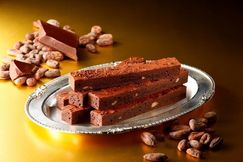 羽田空港限定商品として新発売する生ブラウニー「ビターショコラ」はエクアドル産カカオ豆を使用したカカオ分70%のクーベルチュールチョコレートを生地に練り込みクルミの刻みでアクセント。