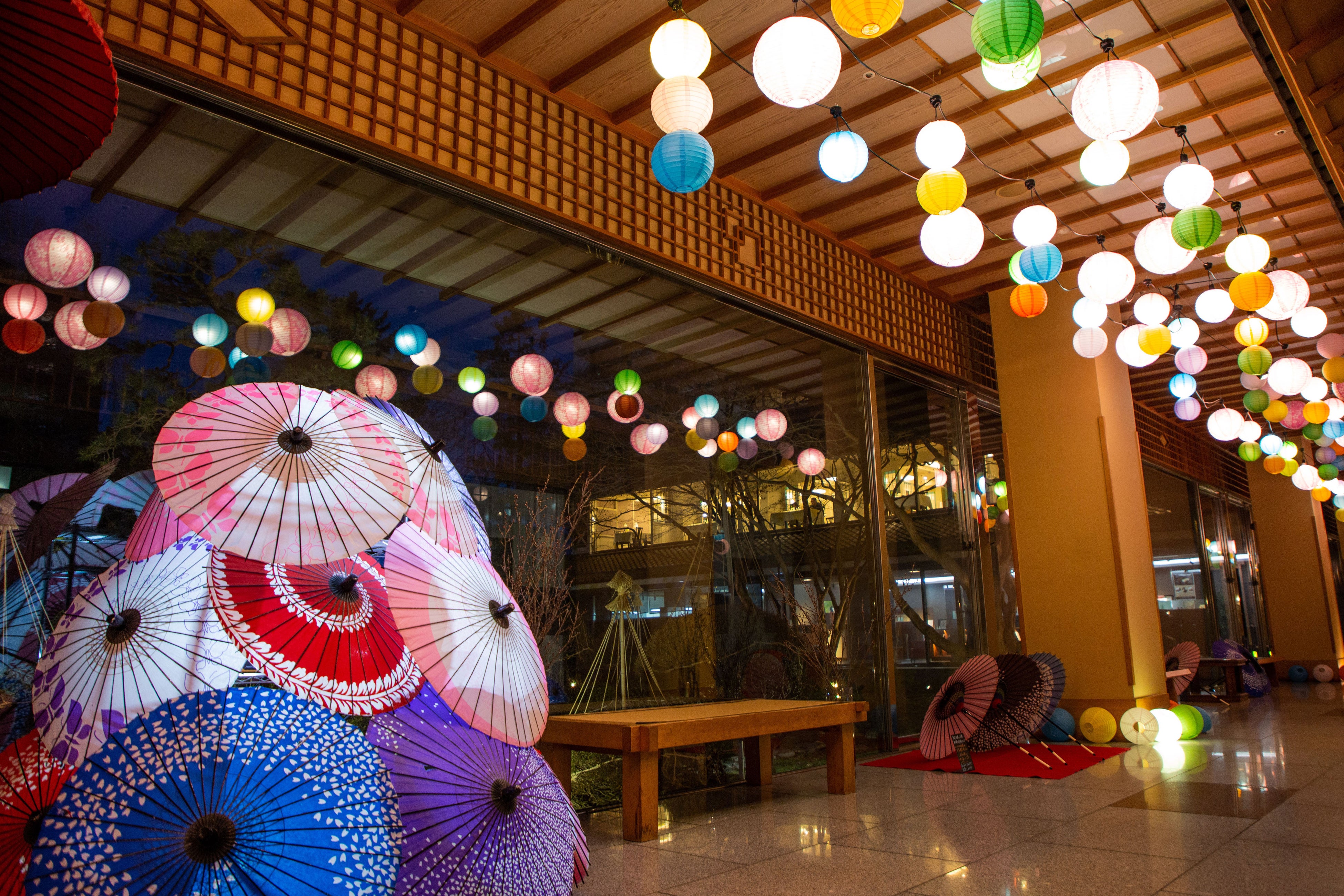 ご好評の写真スポット、1階廊下の提灯は、春仕様へと衣替えをしております。