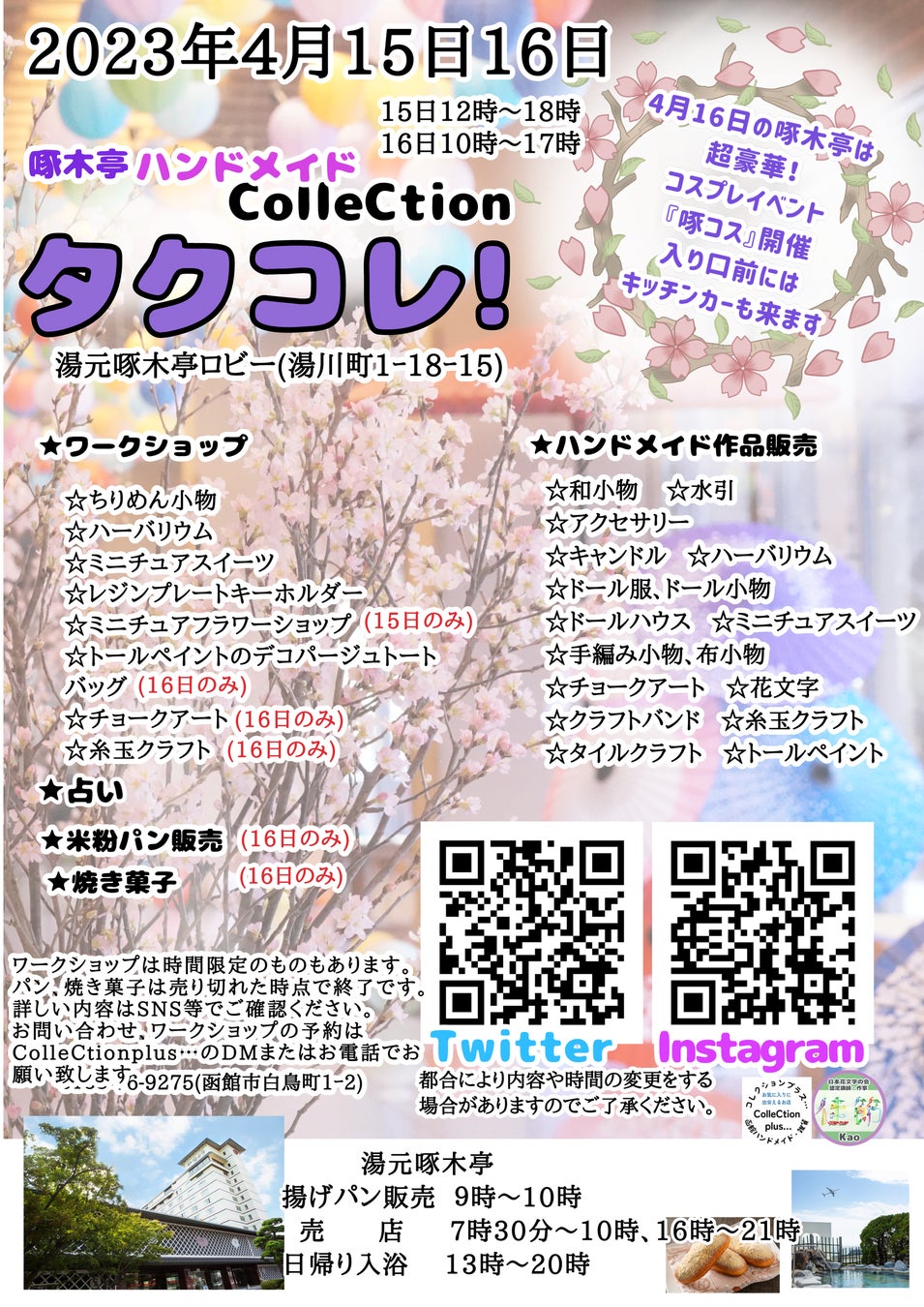 【函館湯の川温泉/湯元啄木亭】啄(たく)コス 4/16(日)【当日はキッチンカーも登場】