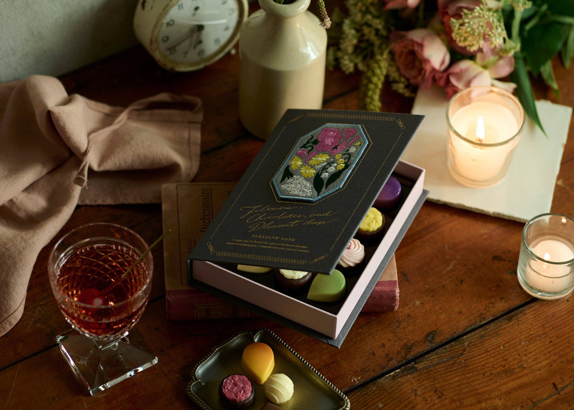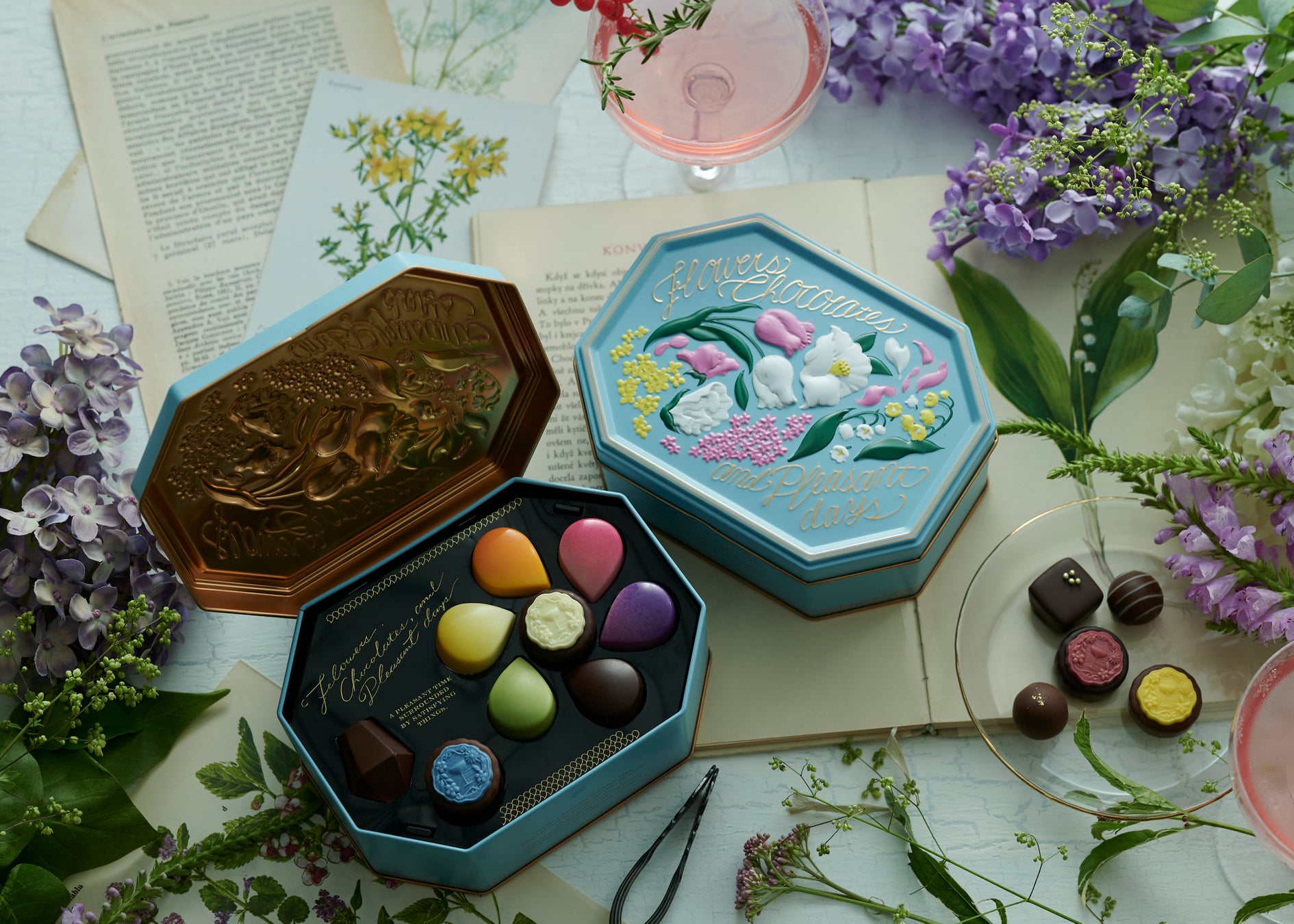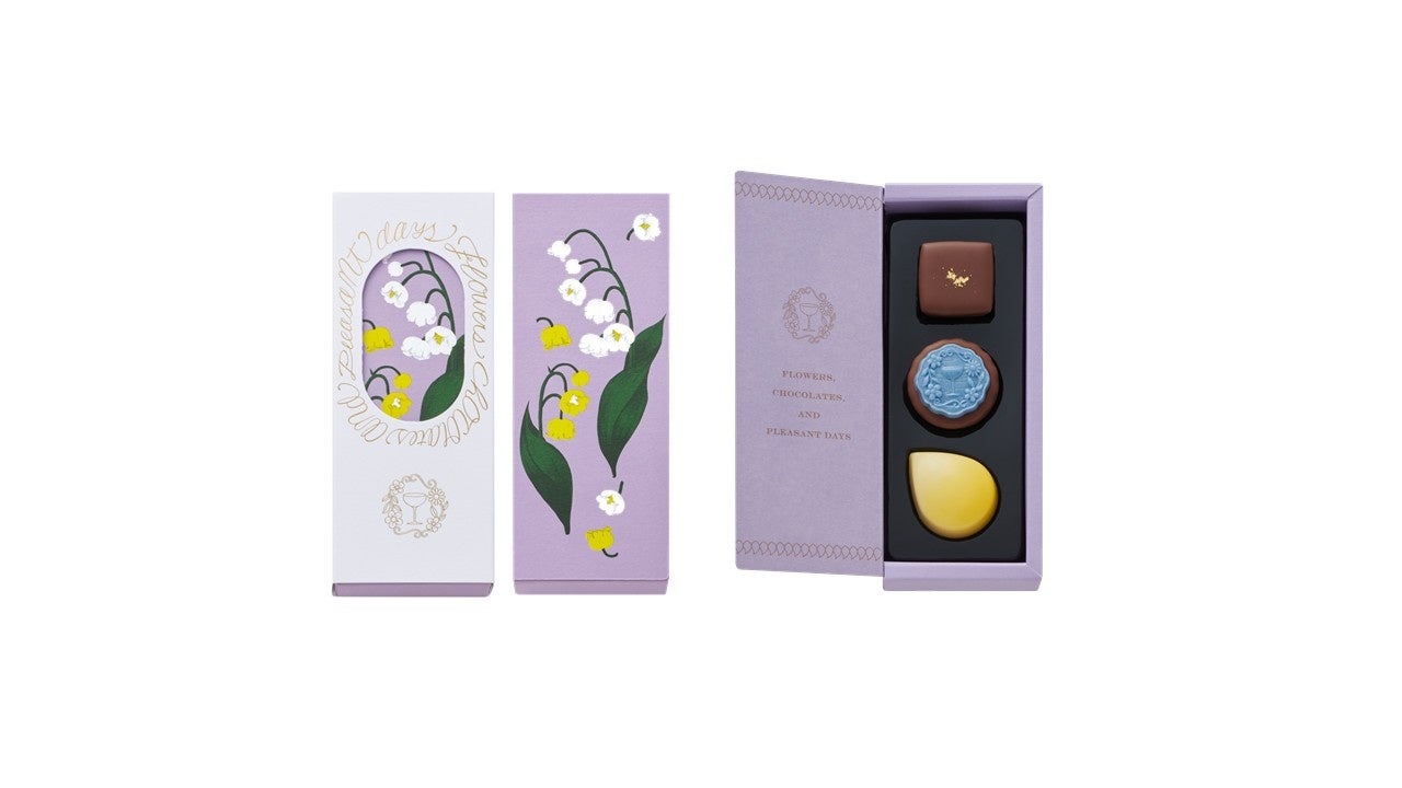 ちらりとお花がのぞく小さな箱に選りすぐりのチョコレートを閉じ込めて。