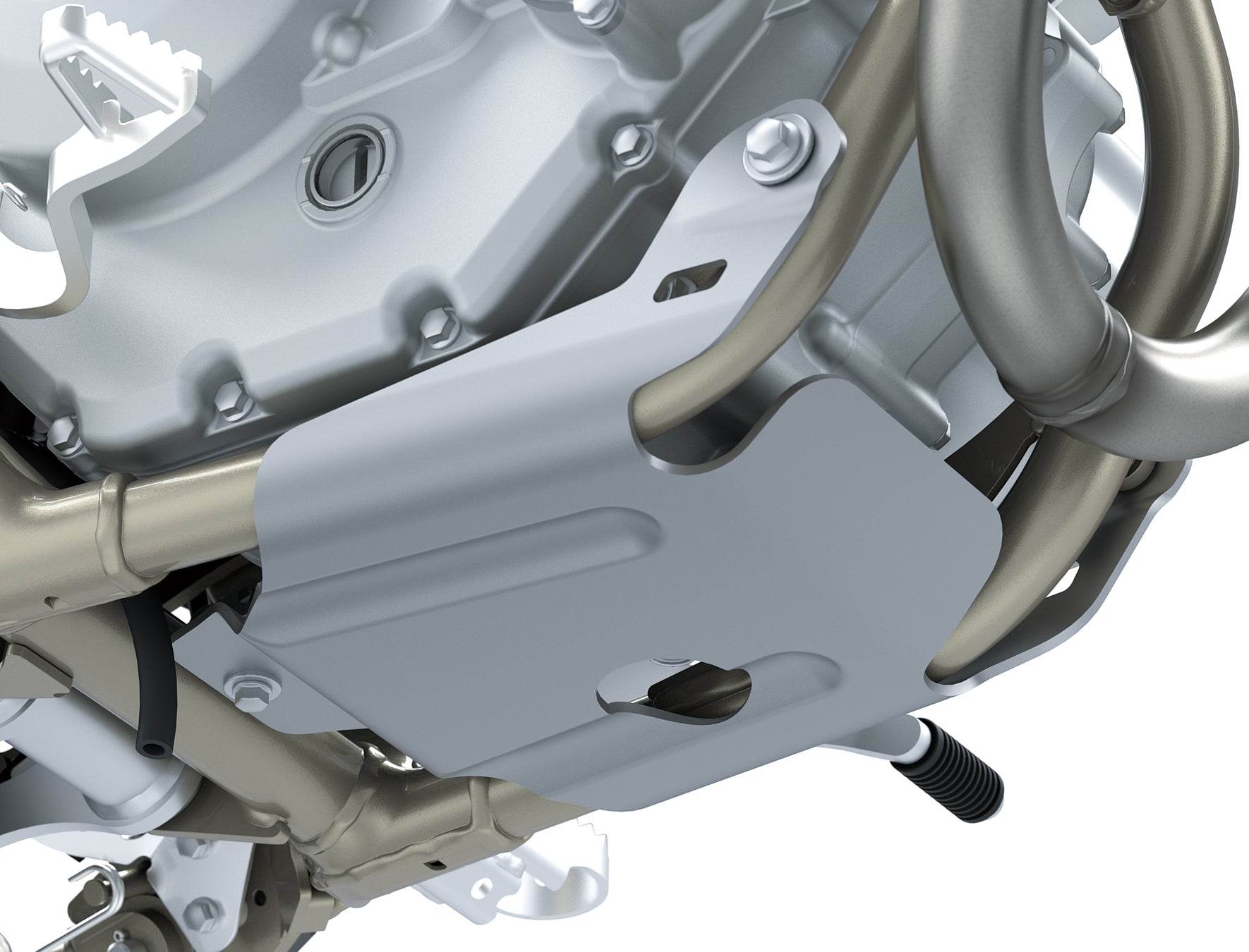 フレームはエンジンを囲むようにステアリングヘッドからスイングアームピボットを直線的に結ぶ、ペリメター構造のセミダブルクレードル。インナーチューブ径37㎜のフロントフォークとリヤのニューユニトラックサスペンションは、いずれも200㎜と223㎜のホイールトラベルを持ち、最低地上高も240㎜を確保。旅の途中で踏み入れたオフロードでも高い走破性を発揮します。