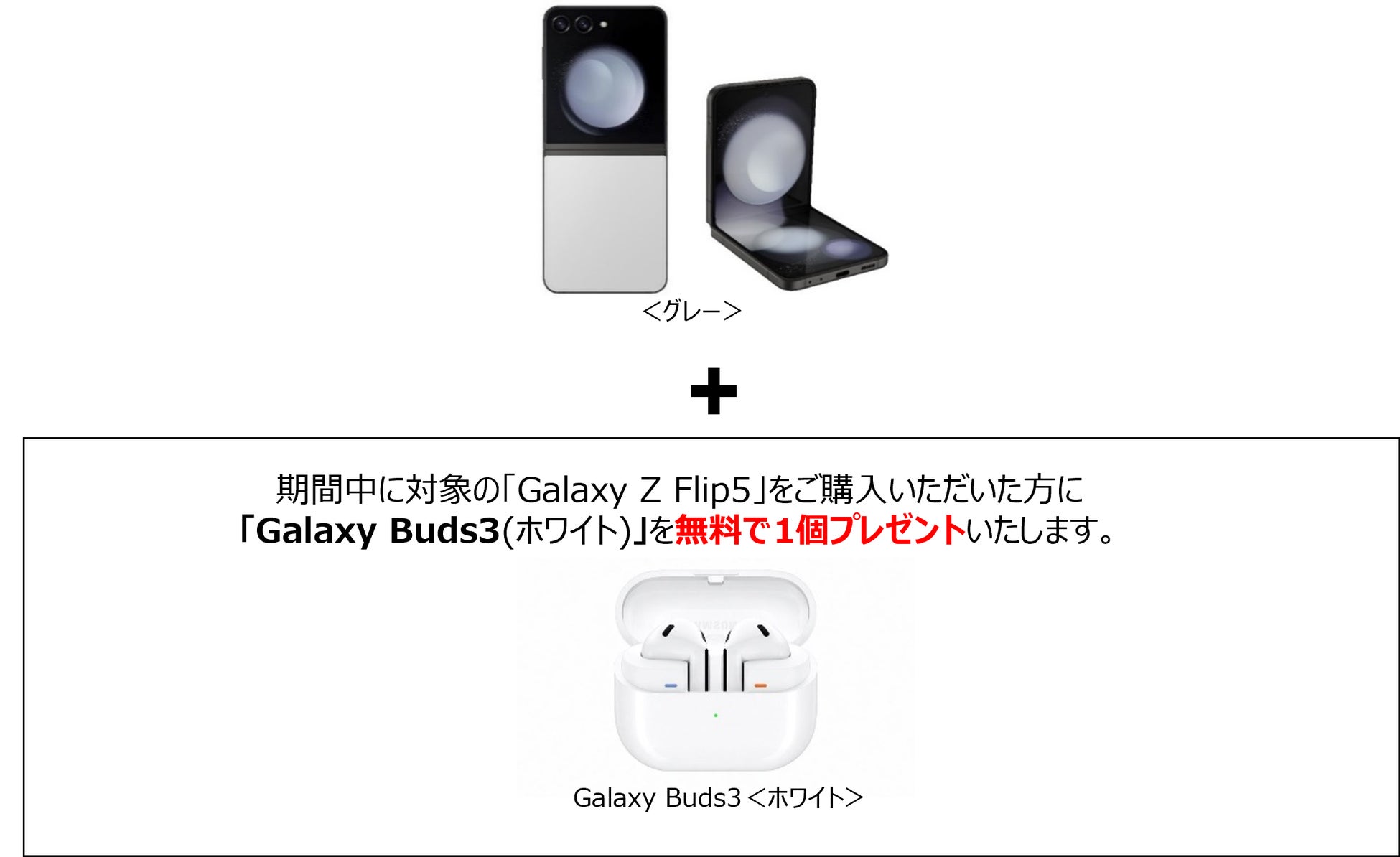 ※対象の「Galaxy Z Flip5」をカートに追加いただくと、自動で20%割引価格が表示されます。「Galaxy Buds3」<ホワイト>は自動で追加されます。