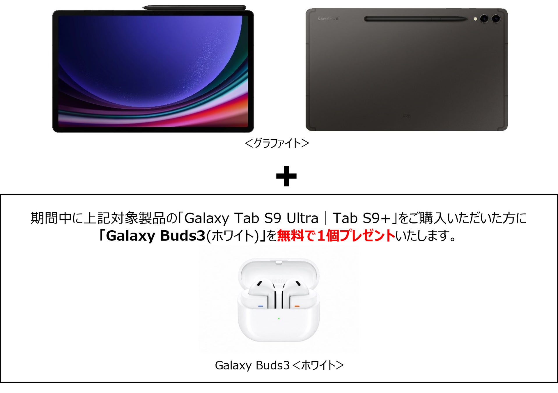 ※対象の「Galaxy Tab S9 Ultra|Tab S9+」をカートに追加いただくと、自動で10%割引価格が表示されます。「Galaxy Buds3」<ホワイト>は自動で追加されます。